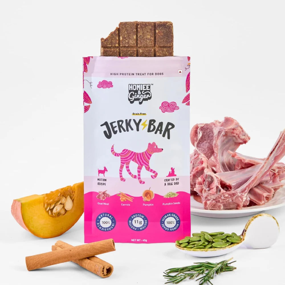 Homiee & Ginger Air Dried Grain Free Mutton Jerky Bar Dog Treats: (45g)