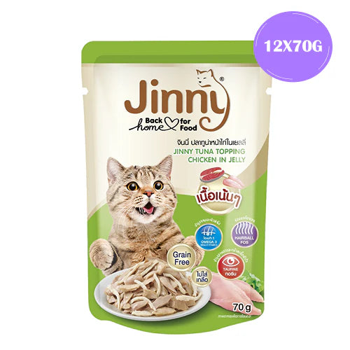 Jinny Tuna Topping Chicken in Jelly is a tasty and nutritious wet cat food that your feline companion will adore. This grain-free formula is enriched with essential nutrients such as Omega 3 & 6 fatty acids, Taurine, and hairball control ingredients to promote overall health and well-being. The flavorful tuna topping enhances every bite, turning mealtime into a delightful experience.