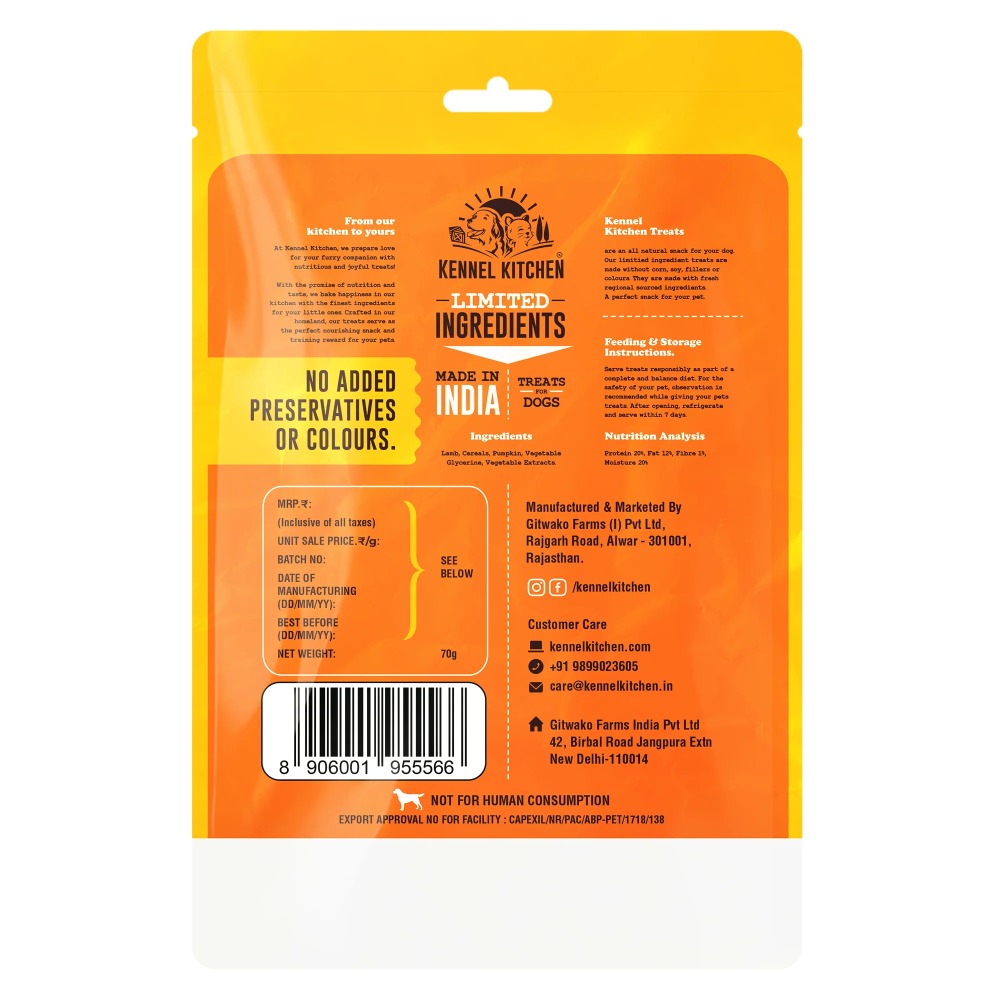 Lamb, Cereals ,Pumpkin, Vegetable glycerin, vegetable extracts.