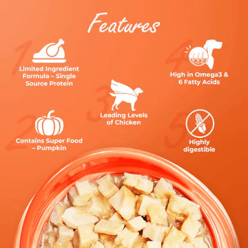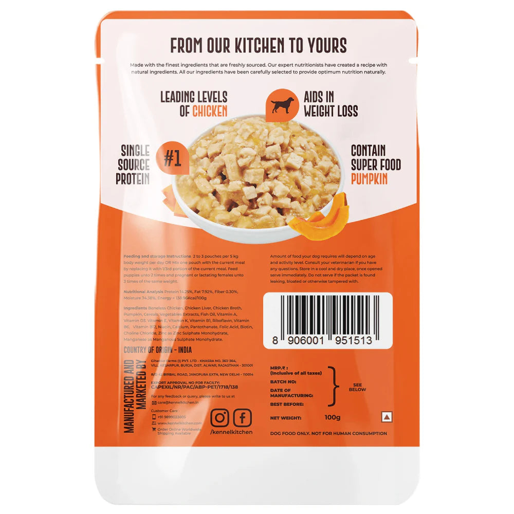 Boneless Chicken, Chicken Liver, Chicken Broth, Cereals, Vegetables extracts, Fish oil, Vitamin A, Vitamin D3, Vitamin E, Vitamin K, Vitamin B1, Riboflavin, Vitamin B6, Vitamin B12, Niacin, Calcium, Pantothenate, Folic Acid, Biotin, Choline Chloride, Zinc as Zinc Sulphate Monohydrate, Manganese as Manganous Sulphate Monohydrate.