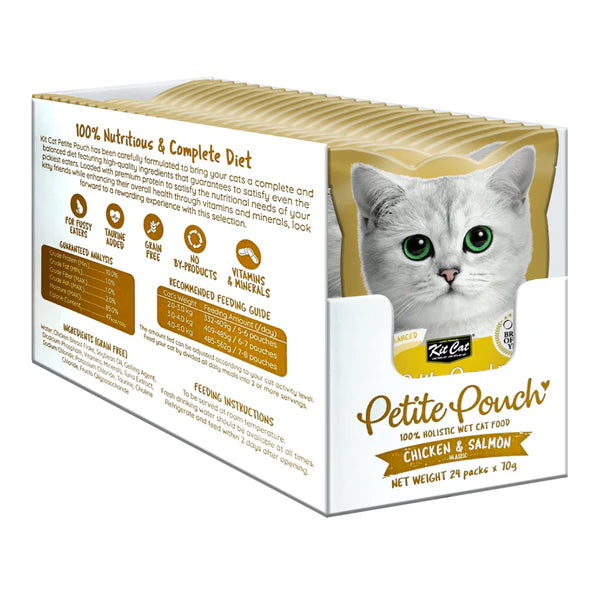 Kit Cat Petite Pouch has been carefully formulated to bring your cats a complete and balanced diet featuring quality ingredients that guarantees to satisfy even the pickiest eaters. Loaded with premium protein to satisfy the nutritional needs of your kitty friends while enhancing their overall health through vitamins and minerals, look forward to a rewarding experience with this selection.