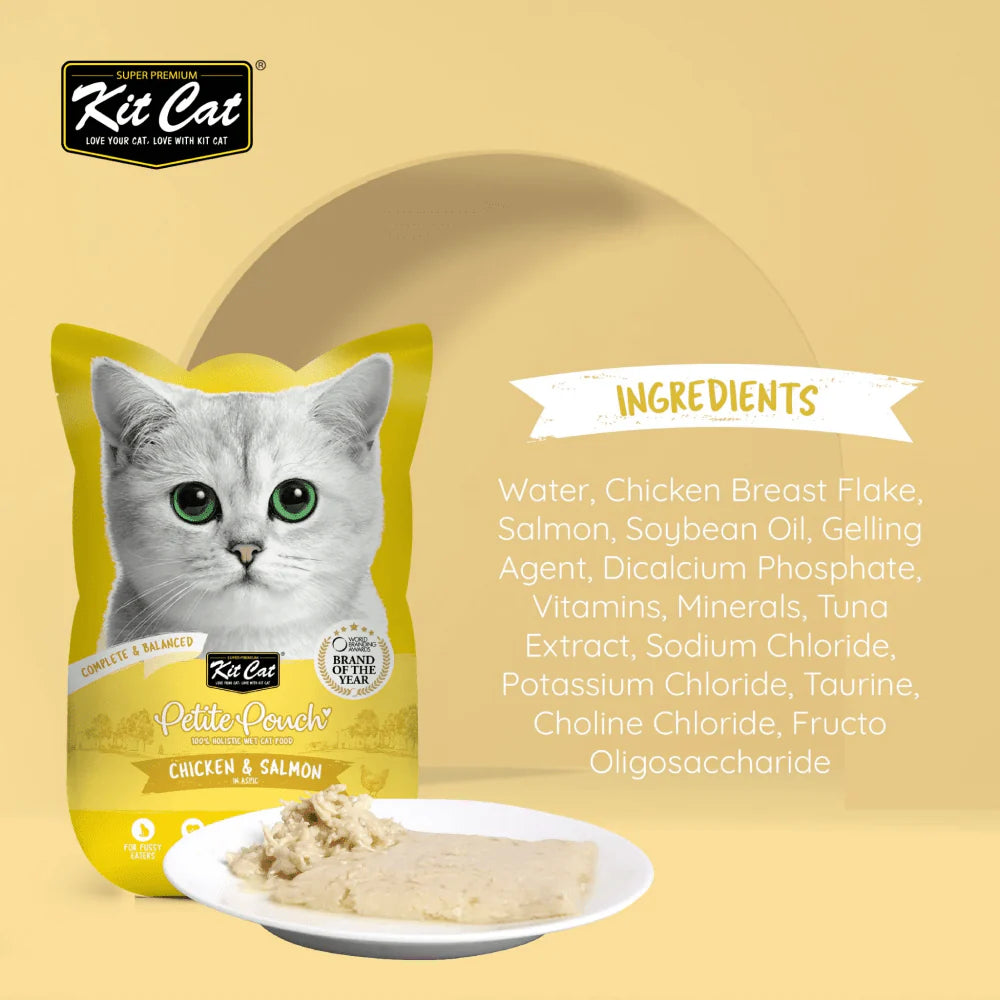 Kit Cat Petite Pouch has been carefully formulated to bring your cats a complete and balanced diet featuring quality ingredients that guarantees to satisfy even the pickiest eaters. Loaded with premium protein to satisfy the nutritional needs of your kitty friends while enhancing their overall health through vitamins and minerals, look forward to a rewarding experience with this selection.