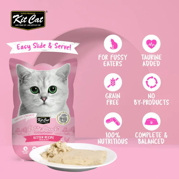 Kit Cat Petite Pouch has been carefully formulated to bring your cats a complete and balanced diet featuring quality ingredients that guarantees to satisfy even the pickiest eaters. Loaded with premium protein to satisfy the nutritional needs of your kitty friends while enhancing their overall health through vitamins and minerals, look forward to a rewarding experience with this selection.