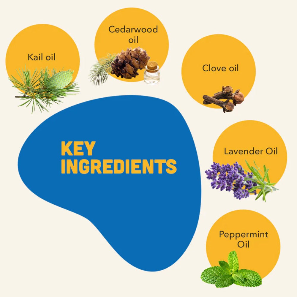 Ingredients: Kail oil/ Cedrus deodara Cedarwood oil/ Cedrus deodara Clove oil/ Syzygium aromaticum Mentha piperita oil Vitamin E Acetate oil Lavender oil/ Lavandula angustifolia