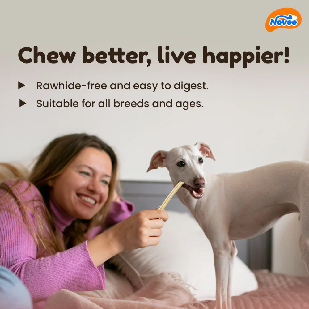 Give your dog a delicious and nutritious snack with Novee Milky Chew Goat Milk Stick! These sticks are made from premium goat milk, packed with protein and essential nutrients to support your pet's health. The chewy texture helps promote dental health by reducing plaque and tartar buildup. Perfect for training or just as a tasty treat, your dog will love these sticks!