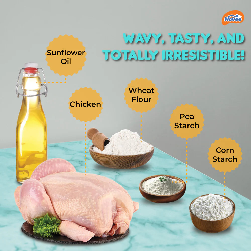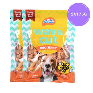 Satisfy your dog's cravings with Novee Wave Cut Duo Jerky Chicken & Lamb! This tasty treat combines the irresistible flavors of chicken and lamb, offering a protein-packed snack that dogs will adore. The unique wave cut design enhances the chewing experience while promoting dental health. Made with high-quality ingredients, these jerky treats are perfect for rewarding good behavior or just spoiling your furry friend!