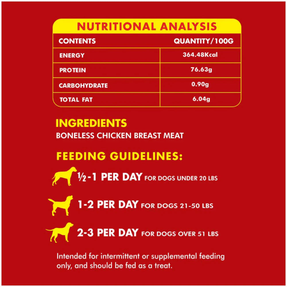 Chicken jerky treats are equally appetizing and rich in protein. These treats are made of high-quality chicken breast as they contain high amounts of protein and low levels of fat. A high-protein and low-fat diet help keep your dog’s weight in check and obesity under control. Chicken is lean meat and is perfect for your canine friends. It provides dogs with tremendous energy. Amino acids are the building blocks of protein. Chicken has the highest levels of amino acids in its protein and acts as an effective dietary supplement.