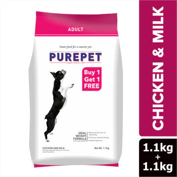 Purepet Chicken & Milk Adult Dry Dog Food offers a smart and economical way to nourish your adult dog. With its combination of complete nutrition, delicious taste, and gentle digestibility, this food is a paw-sitive choice for your furry best friend.