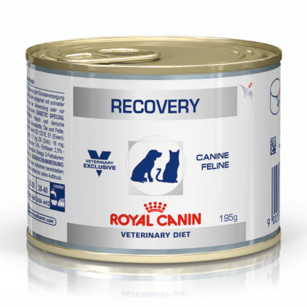 Royal Canin Recovery is a specialized and complete diet crafted to aid the recovery of your adult dog or cat after an illness, injury, or during critical health conditions. Tailored to provide high energy and balanced nutrition, this wet food is not only palatable but also facilitates the easy acceptance of nutrients crucial for your pet's recovery.