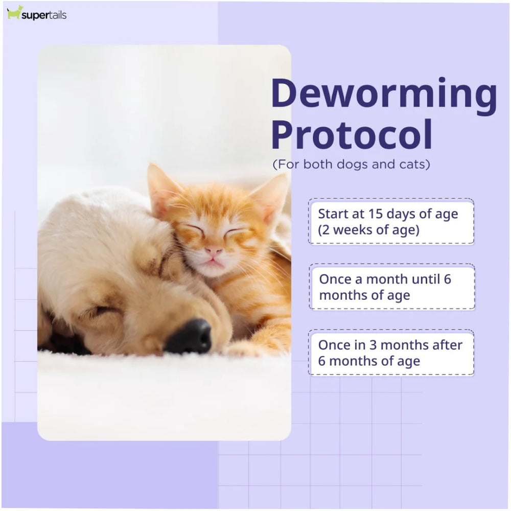 Kittens: Start deworming at 3 weeks of age and repeat every 2-3 weeks until 12 weeks old.