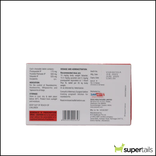 Savavet Kiwof Plus XL Dog Deworming Tablets are a highly effective solution designed to protect your dog from common intestinal parasites. Available in a convenient pack of 10 tablets, these dewormers are formulated to combat a range of parasitic infections, ensuring your canine companion remains healthy and happy. Whether you're addressing an ongoing issue or simply maintaining your dog's health, Savavet Kiwof Plus XL provides a reliable and efficient option for comprehensive deworming.