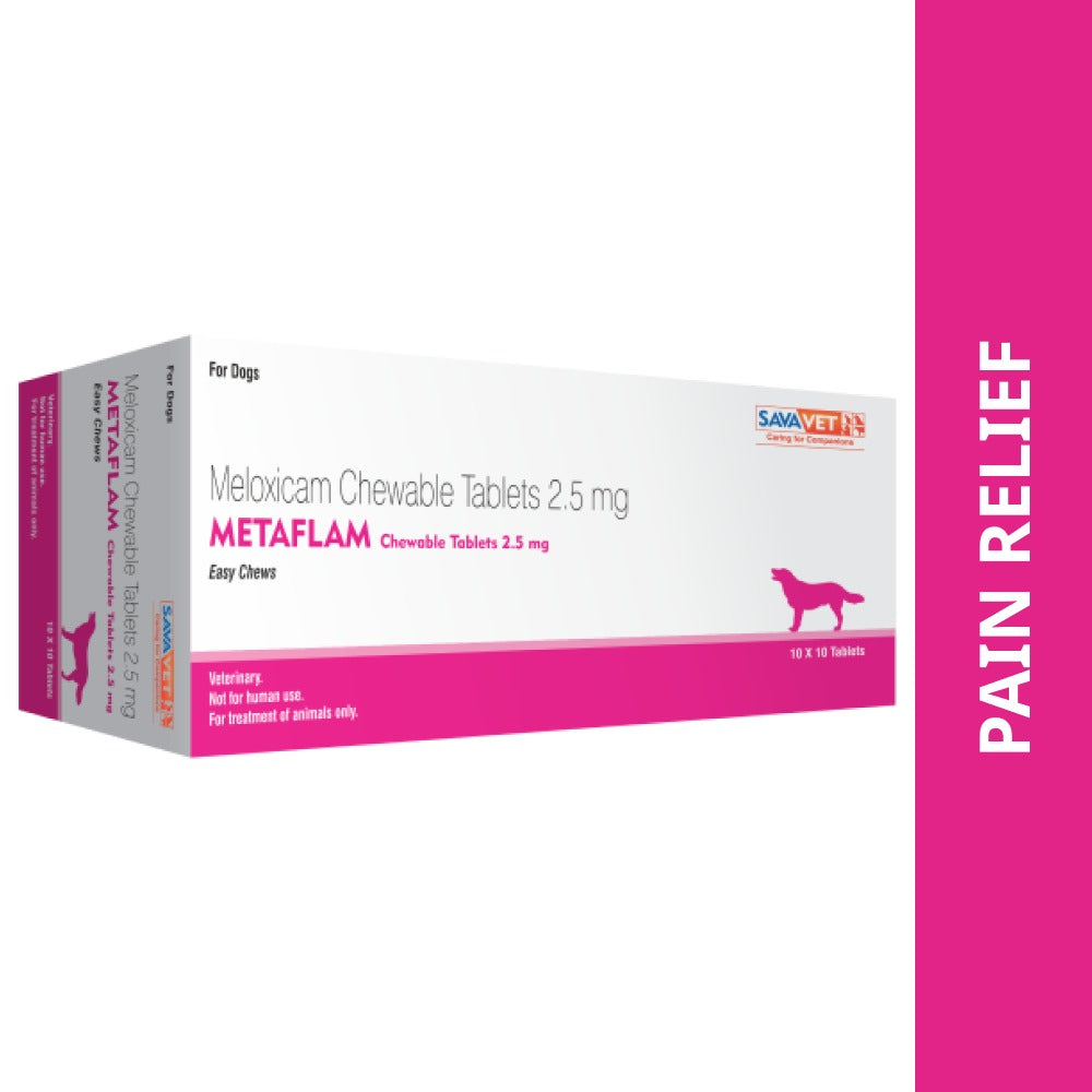Introducing SAVAVET Metaflam Tablet, a medication featuring the active ingredient Meloxicam—an NSAID (non-steroidal anti-inflammatory drug) belonging to the oxicam class. Meloxicam acts by inhibiting prostaglandin synthesis, providing analgesic, antipyretic, anti-inflammatory, and anti-exudative effects.