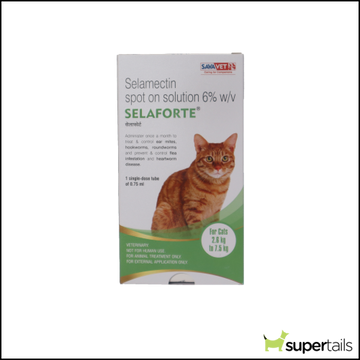 Savavet Selaforte is a very effective topical flea and tick treatment for cats that is intended to prevent and control infestations of ticks, fleas, ear mites, and other parasites. The active ingredient, Selamectin, is a potent parasiticide for cats that offers broad-spectrum parasite protection against both external and internal parasites. Selaforte for cats is conveniently packed as an easy-to-apply spot-on solution, ensuring your feline's health, comfort, and safety from the risks of flea and tick infestation.