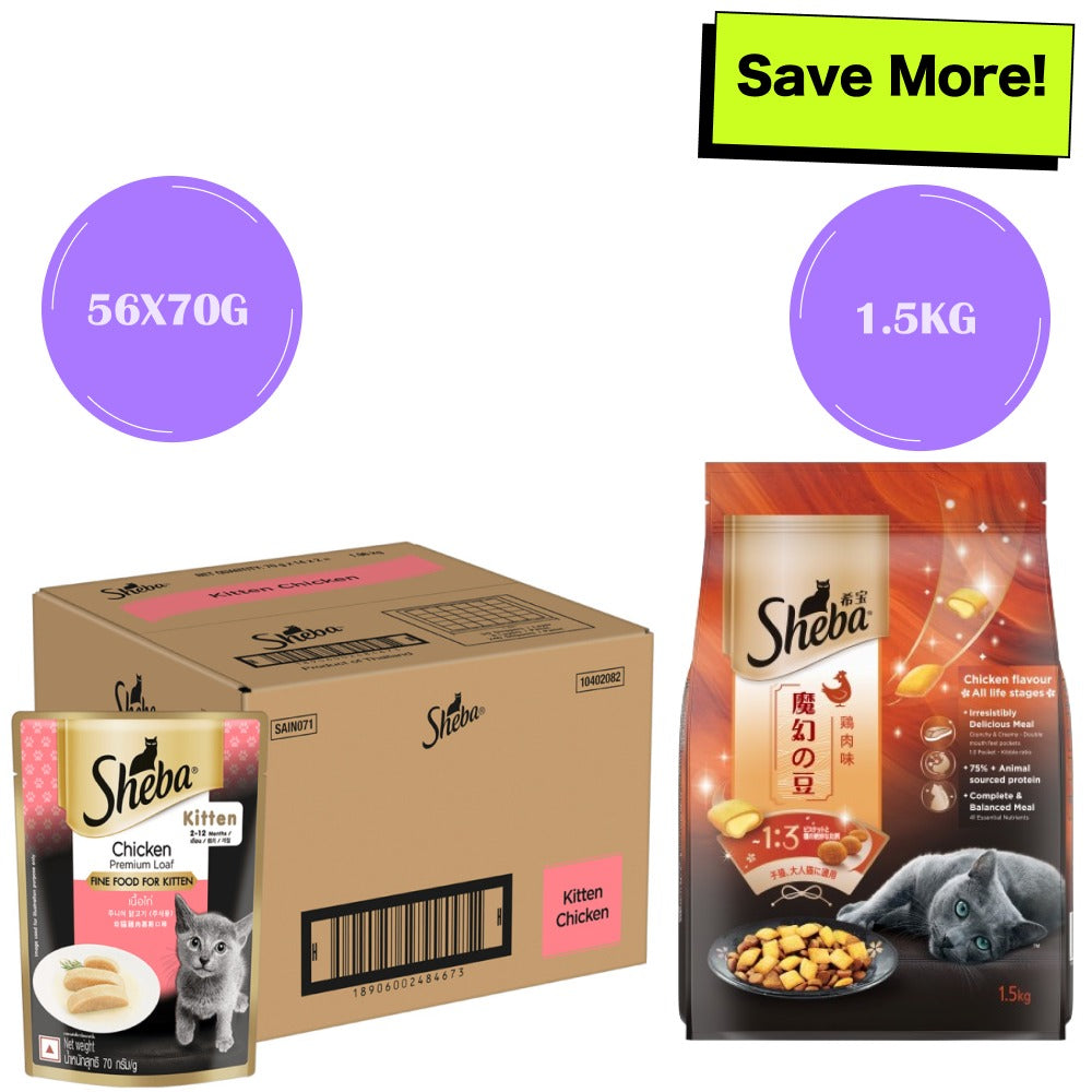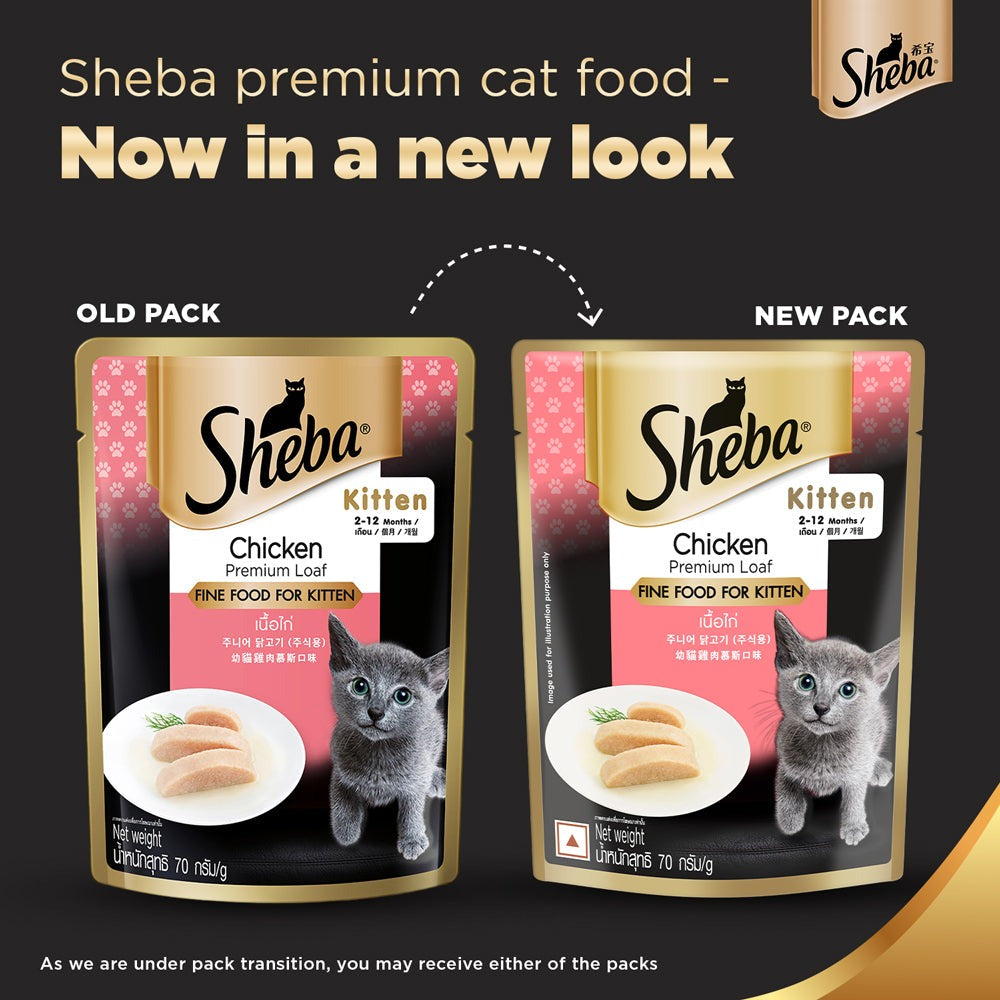 Sheba Fine Premium Kitten (2-12 months) Wet Cat Food, Chicken Premium Loaf, is a gourmet food crafted with chicken. It has a pleasing consistency & tantalizing texture. This Sheba kitten cat food contains high moisture to keep your kitten well-hydrated. It contains essential nutrients like protein, Vitamin E & minerals. It perfectly complements your kitten's complete & balanced diet.