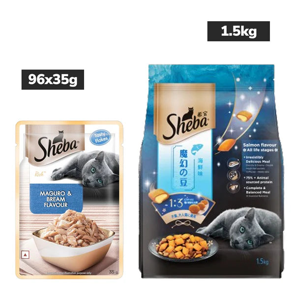 Sheba Rich Premium Adult (1+ years) Wet Cat Food, Maguro & Bream Flavour, is a gourmet food with tasty flakes. It has a pleasing consistency & tantalizing texture. It contains high moisture to keep your cat well-hydrated. It contains the exquisite taste of carefully selected fish & the goodness of protein. It perfectly complements your cat’s complete & balanced diet.