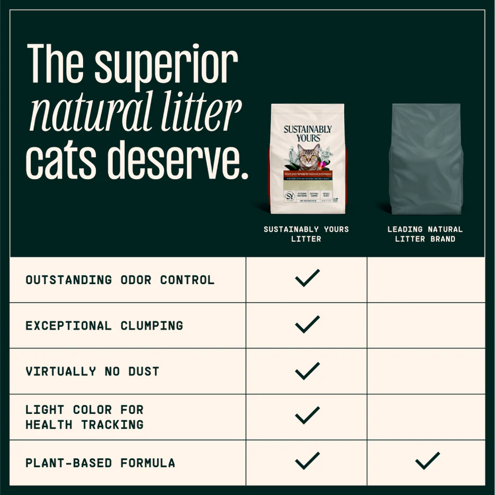At Sustainably Yours, we set out to create a litter that is both high-performing and environmentally friendly. Our plant-based formula is full of benefits for both you and your cat—all while remaining sustainable. Mixed-grain formula for balanced performance.