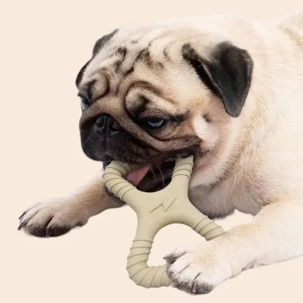 A strong chewable toy for dogs, that replicates the thrill of chewing table legs, chomping on TV remotes and biting off chunks of footwear. This dog toy is non-toxic, flexible, durable and washable by hand with cold water. All, with the bite-feel of things far more sinful.
