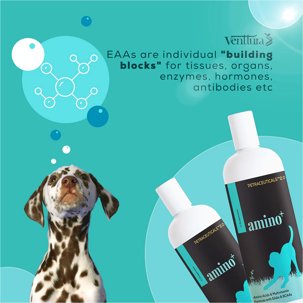 Venttura Amino+ is a specialized nutritional supplement tailored specifically for canine companions, offering a unique blend of essential amino acids (EAAs), branch chain amino acids (BCAAs), and non-essential amino acids crucial for vital bodily functions such as growth, tissue repair, and immune support. Including key amino acids like histidine, isoleucine, leucine, lysine, methionine, phenylalanine, threonine, tryptophan, and valine, Amino+ ensures holistic physical well-being and promotes robust health in dogs. It's essential to consult a veterinarian for expert advice before introducing new supplements or dietary adjustments tailored to your pet's individual needs. Vital nutrients like vitamin B12, calcium, and omega-3 fatty acids derived from premium sources such as salmon oil and fish oil are essential for enhancing your furry friend's overall health and vitality. By adhering to regular deworming schedules and utilizing trusted products like Bravecto tablets for dogs, you actively contribute to maintaining your pet's well-being. Additionally, incorporating appropriate amino acid-rich dog bones into your pet's dietary regimen not only serves as a satisfying chew but also provides essential calcium reinforcement. For an extra vitality boost, consider integrating multivitamins and vitamin D3 supplements into your pet's daily routine, ensuring they thrive with energy and vigor. Adding this sentence helps further emphasize the importance of proactive pet care and the benefits of a well-rounded diet and supplementation plan for canine companions.