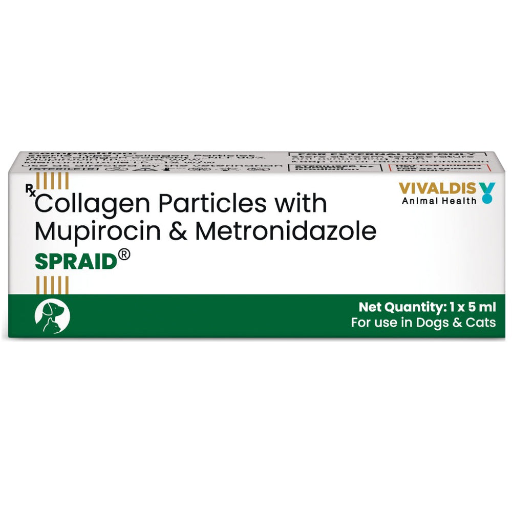 Vivaldis Spraid Wound Healer for Dogs and Cats is a powerful remedy that promotes wound healing and protects your pet from infections. This sophisticated wound healer for dogs contains potent antiseptic ingredients that assist in disinfecting wounds, abrasions, and minor injuries while also relieving discomfort. Its quick-absorbing composition provides immediate comfort, decreases inflammation, and stimulates tissue regeneration. This wound care spray is suitable for both dogs and cats and is great for pet owners who want to keep their pet's skin in good condition. This must-have first-aid wound treatment will keep your pet safe and comfortable.