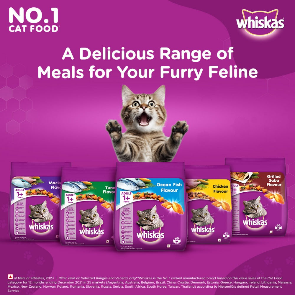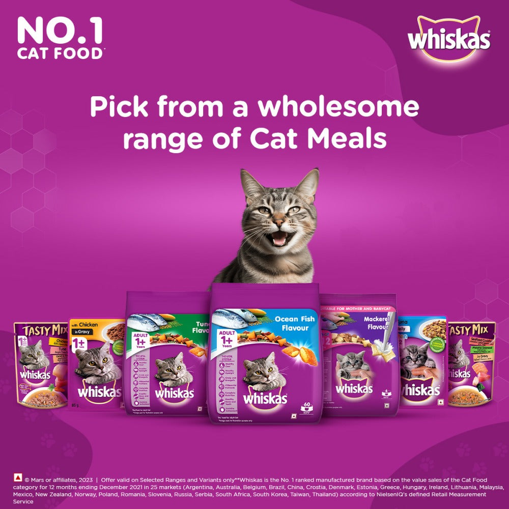 Whiskas Ocean Fish dry cat food is a complete and balanced meal on its own.