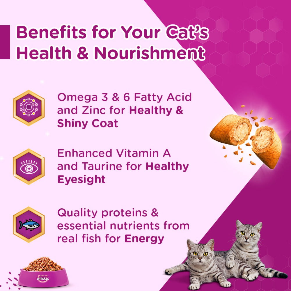 Comprehensive Nutrition: Containing 41 essential nutrients, Whiskas Ocean Fish adult dry cat food provides complete and balanced nutrition for your adult cat.