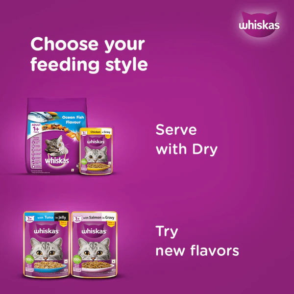 Whiskas chicken in gravy wet meal adult cat food provides complete nutrition for your adult pet cat. A complete and balanced cat food, Whiskas gravy is designed to take care of cat’s daily nutritional requirements and provide it with all the required vitamins and minerals along with moisture and nourishment for a healthy and happy life.