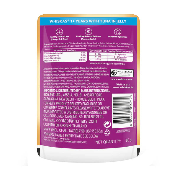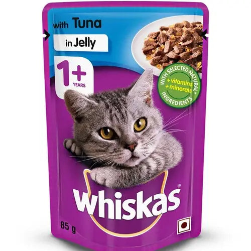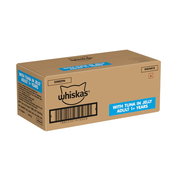 Whiskas tuna in jelly wet meal adult cat food is a balanced wet cat food recipe that provides moisture and nourishment for a healthy and active cat that requires specific care and nutrition. Wet cat food recipe provides moisture and nourishment