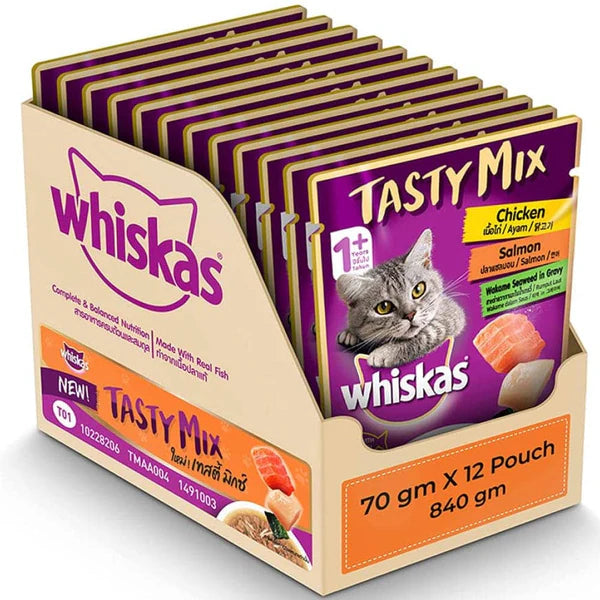 Introducing something new and tasty that is made using varieties of ingredients with complete & balanced nutrition and flavours that your furry friend will love. The new Whiskas Pouch Tasty Mix enhances the cat food’s deliciousness by combining quality protein with chicken and nutrition from colourful veggies in tasty gravy sauce. A cat’s love for fish is thoughtfully blended in Whiskas cat food along with 41 essential nutrients to boost their health & energy. This is an ideal gravy food for cats that will make them happy while they also enjoy it.